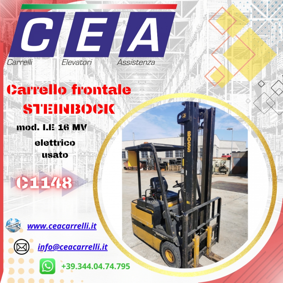 C1148 - Carrello elevatore frontale elettrico 3 ruote usato - STEINBOCK LE16 MV IV A-1